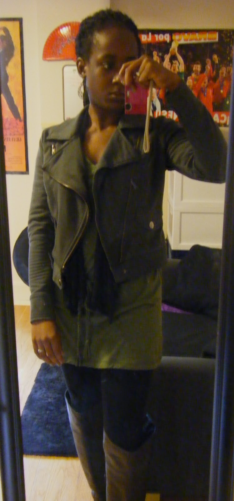 | Monday: grey jacket- old, black cardigan- old, olive green dress- forever 21, black otk boots- urbanog.com |