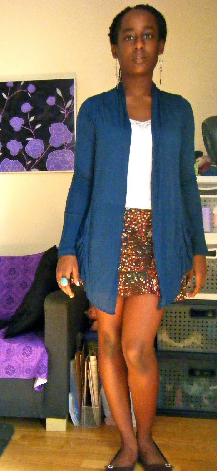 | Thursday: teal cardigan and lace cami- forever 21, skirt- Target |