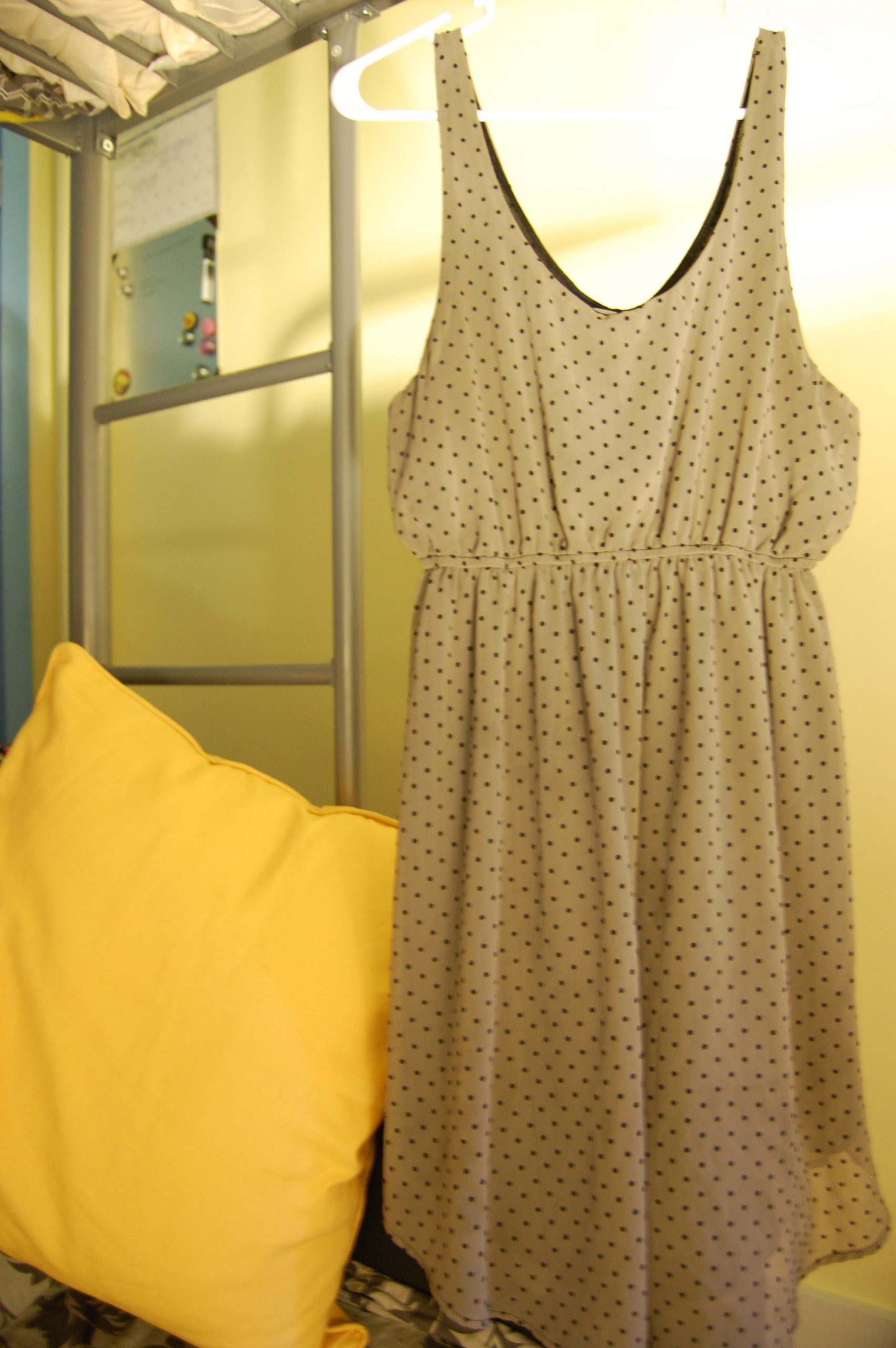 This breezy polka dot dress will be fun to wear while it’s still sunny and will look great with tights and boots when the weather gets a bit chillier. Thanks Melissa! :)