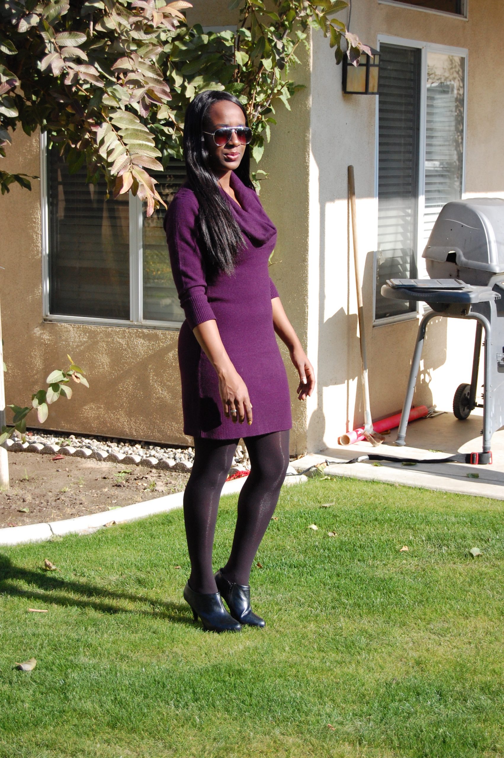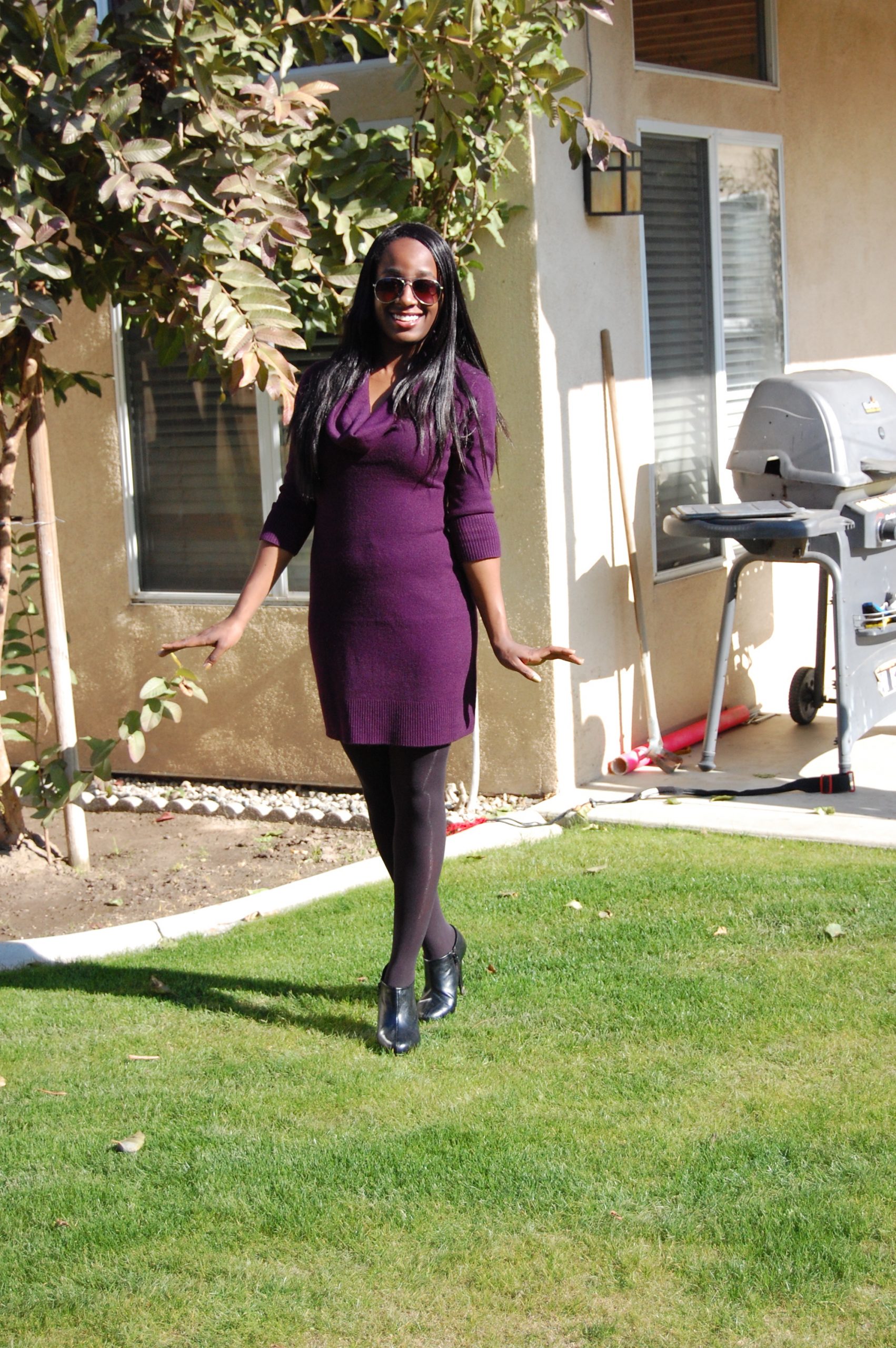 Now I’m playing catch up and I have lots of outfits to share with you guys from my trip home over the holidays! Christmas in California was definitely a warm one! I was quite happy to have a change of scenery and to soak up the sun rays. And of course, it was wonderful to see my family and spend time playing games and just generally goofing around with them. Since my sister knows all about the blog, it was easy to get her to take outfit pictures for me the whole time I was home (thanks a bunch sis! :D) For family pictures, my mom asked us to all wear purple on Christmas day, so I borrowed this pretty sweater dress from my sister. As I’ve mentioned before, I’m a sucker for a sweater dress because it’s easy to throw one on and look chic! If I didn’t know that my sister reads this, I might have stolen borrowed this one from her! ;)