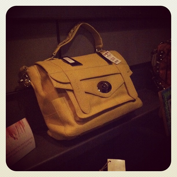 Alex was of course, behind the camera (she took the pictures above), so I don’t have any pictures of her! With my shoes already starting to pinch, the four of us trotted up to Blogger’s Night Out. If I thought the Lulu’s event was crowded, BNO was definitely packed! There were so many bloggers, it was kind of crazy! We were able to find a spot in the back room to sit and do a bit of people watching while we sipped our cocktails. Katy and I talked about this at the event, but what I love about blogger events is that everyone is dressed so differently. There was such a wide range of styles on display and it was fun to take note of all the cool pieces that people were wearing. TJ Maxx and Marshalls, one of the sponsors of BNO, alos had some great items on display, especially this gorgeous yellow purse below.