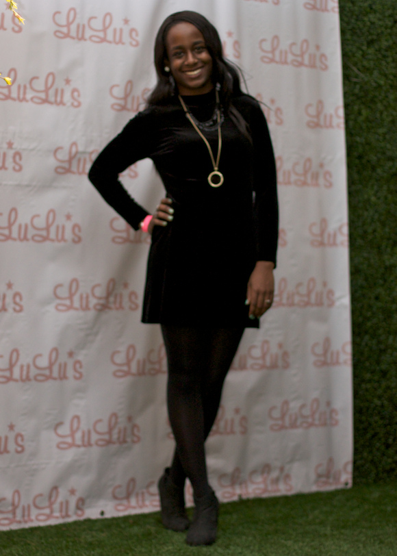 This was such an eventful and fun weekend for me! On Friday, I was so pumped to go to these blogger events, starting off with Lulu’s NYFW Style Studio. Since I knew that I wouldn’t have a lot of time after work to get ready, I laid out my outfit the night before. After trying on a couple of different things, I settled on this little velvet mini dress. I found it at Saver’s for a steal and I absolutely love it! Plus, on a cold New York night, I knew that the long sleeves and thick velvet fabric would keep me warm. I’m also wearing this awesome necklace from Jewelmint that I think makes such a statement! It paired perfectly with my dress- I love the combination of black and gold. :)