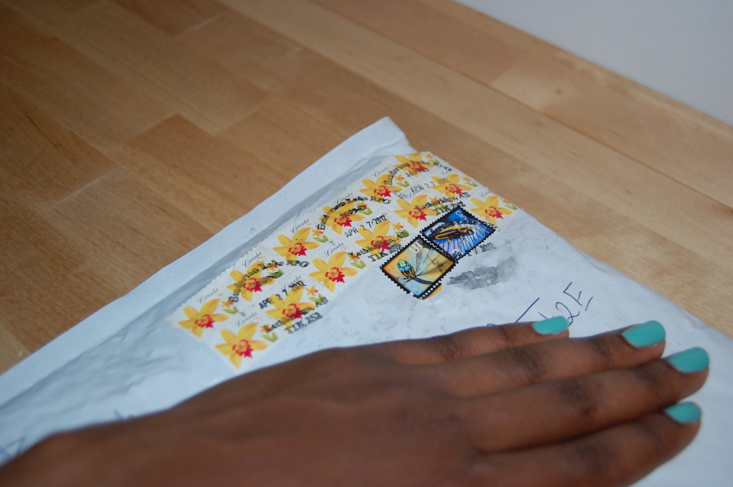 The person who sent my package was the lovely Teaka of Life Like Honey. First of all, I loved that her package was covered in a bunch of Canadian stamps- it was so cool! Inside the package I found that she had sent me several thoughtful gifts, including chocolate, magazines you could only get in Canada, and a beautiful scarf (that I’ve gotten so many compliments on!). Thank you again Teaka! :D