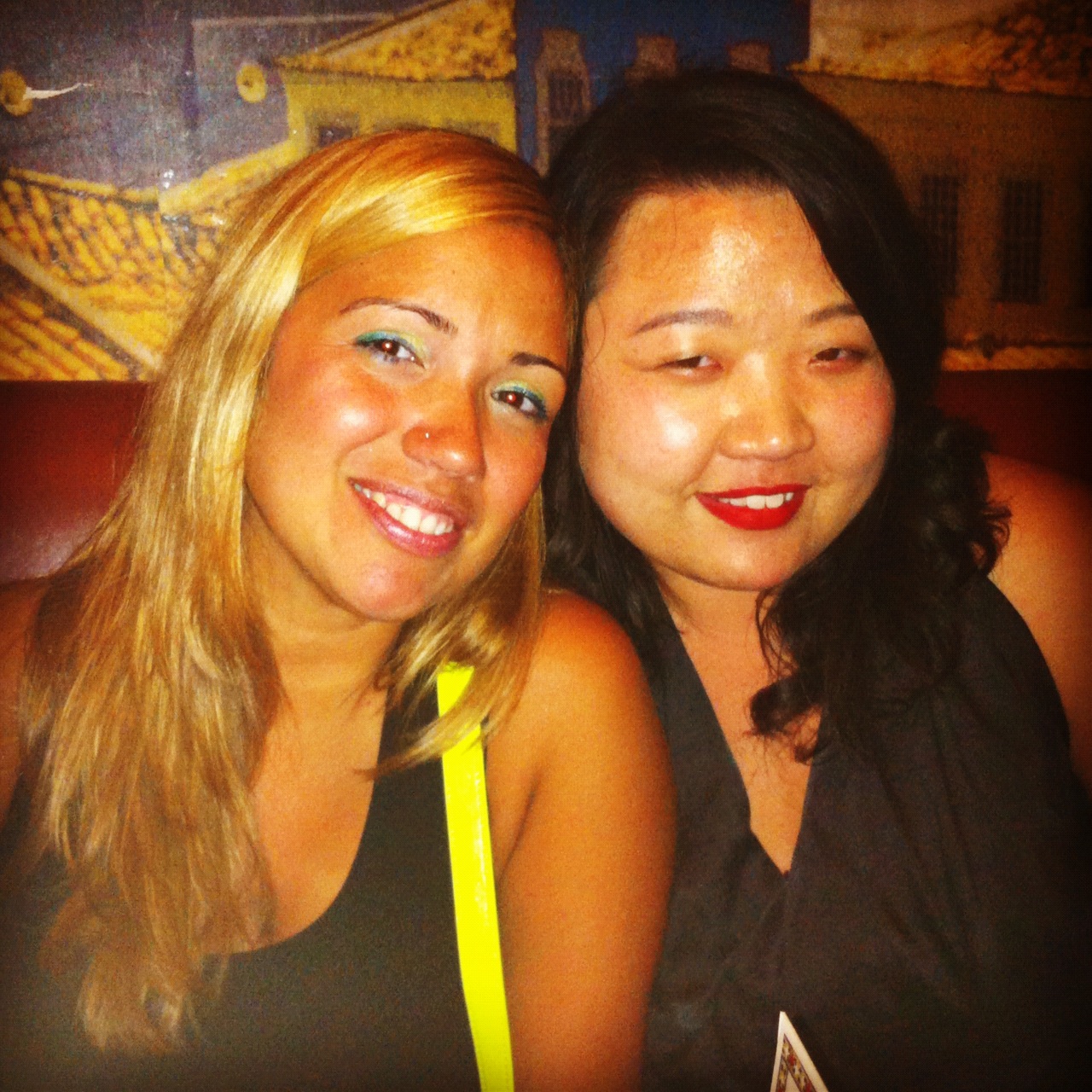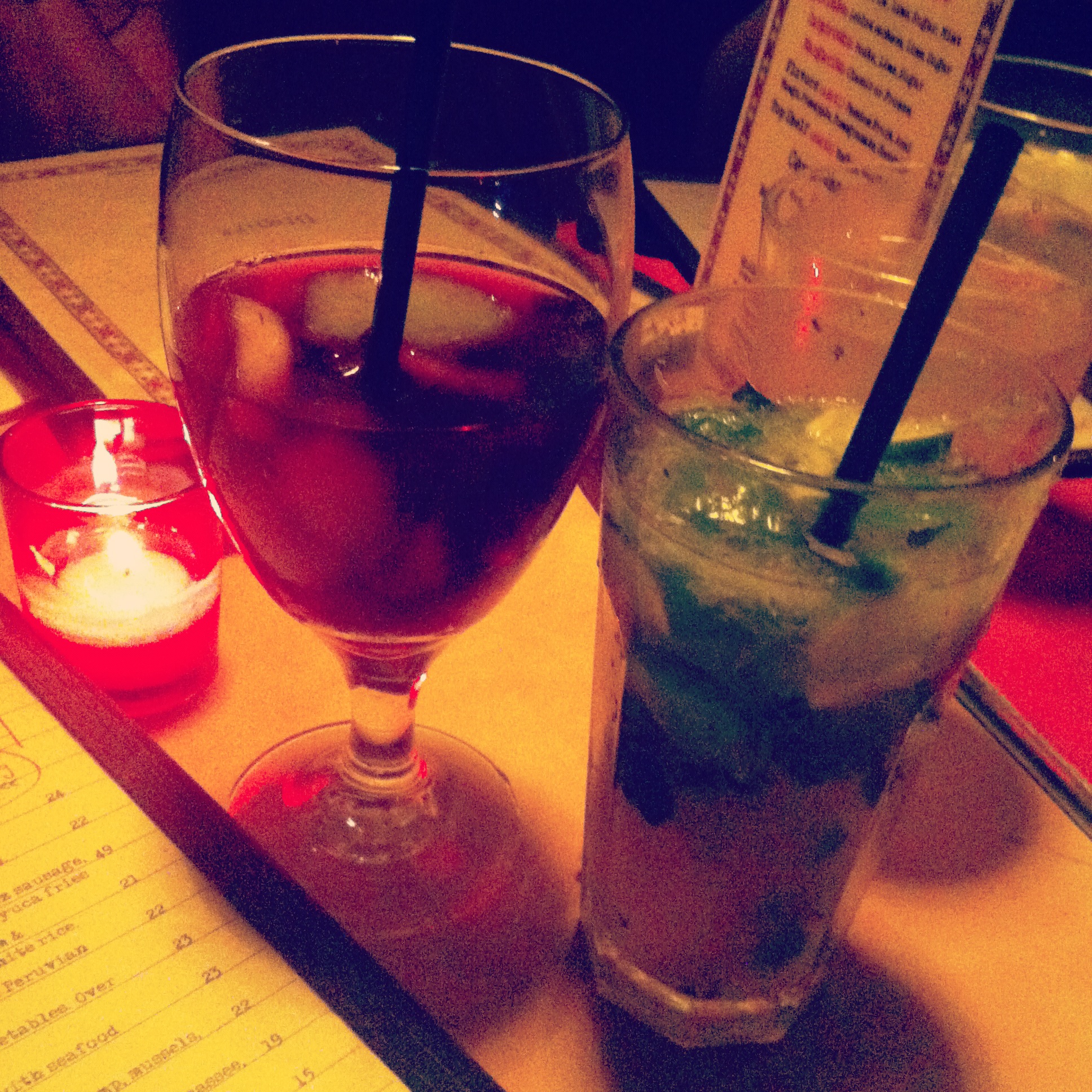 We met up at Yuca Bar, a place in the East Village that I’d meaning to try for a while. The happy hour specials were great– I’m talking $6 for a good-sized glass of sangria, a margarita, a mojito, or a caipirinha. Granted, the place was rather crowded, but once we we finally had our drinks in hand we will glad to be out of the oppressive humidity and inside sipping on yummy cocktails.
