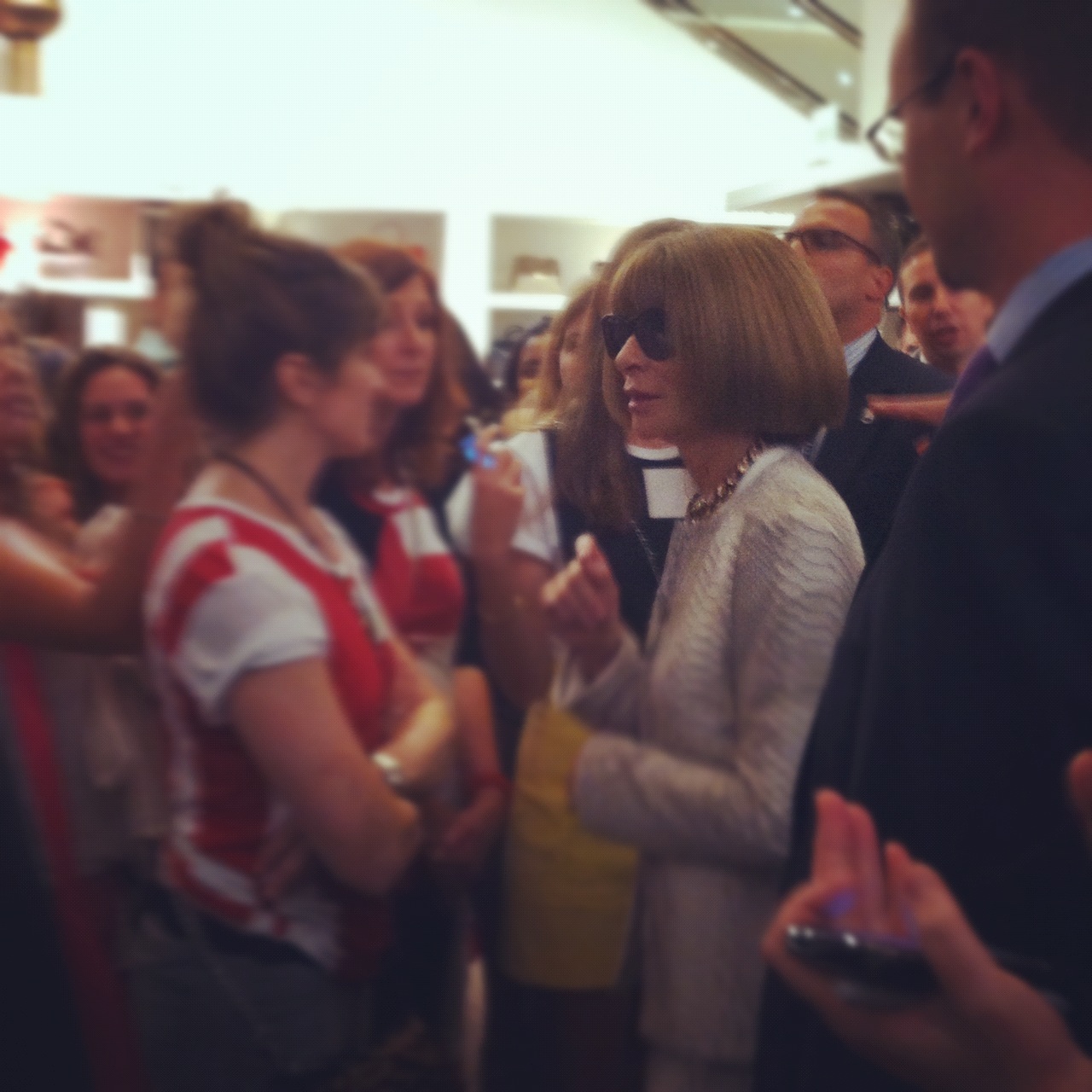I have a love/hate relationship with Fashion’s Night Out. I love that there are so many amazing events going on, but that means that the city is even more crowded/hectic/crazy than usual! This year, Alex and I decided to start out in Midtown at Saks Fifth Avenue. Right off the bat, we spotted Anna Wintour coming out of the elevator on the ground floor, which pretty much made my night!