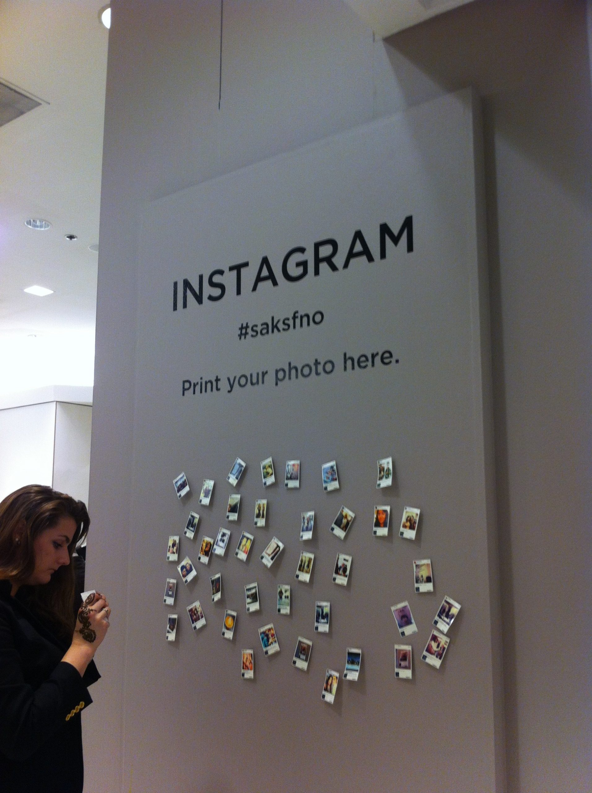 We then made our way upstairs to check out what was happening on the other floors. It turns out that if you tagged your Instagram pictures with #saksfno, they were printed out and added to a collage wall of everyone’s pictures from the night. I also spotted the gorgeous Rebecca Minkoff upstairs, surrounded by stations where you could get henna tattoos, your hair braided, or your nails done.