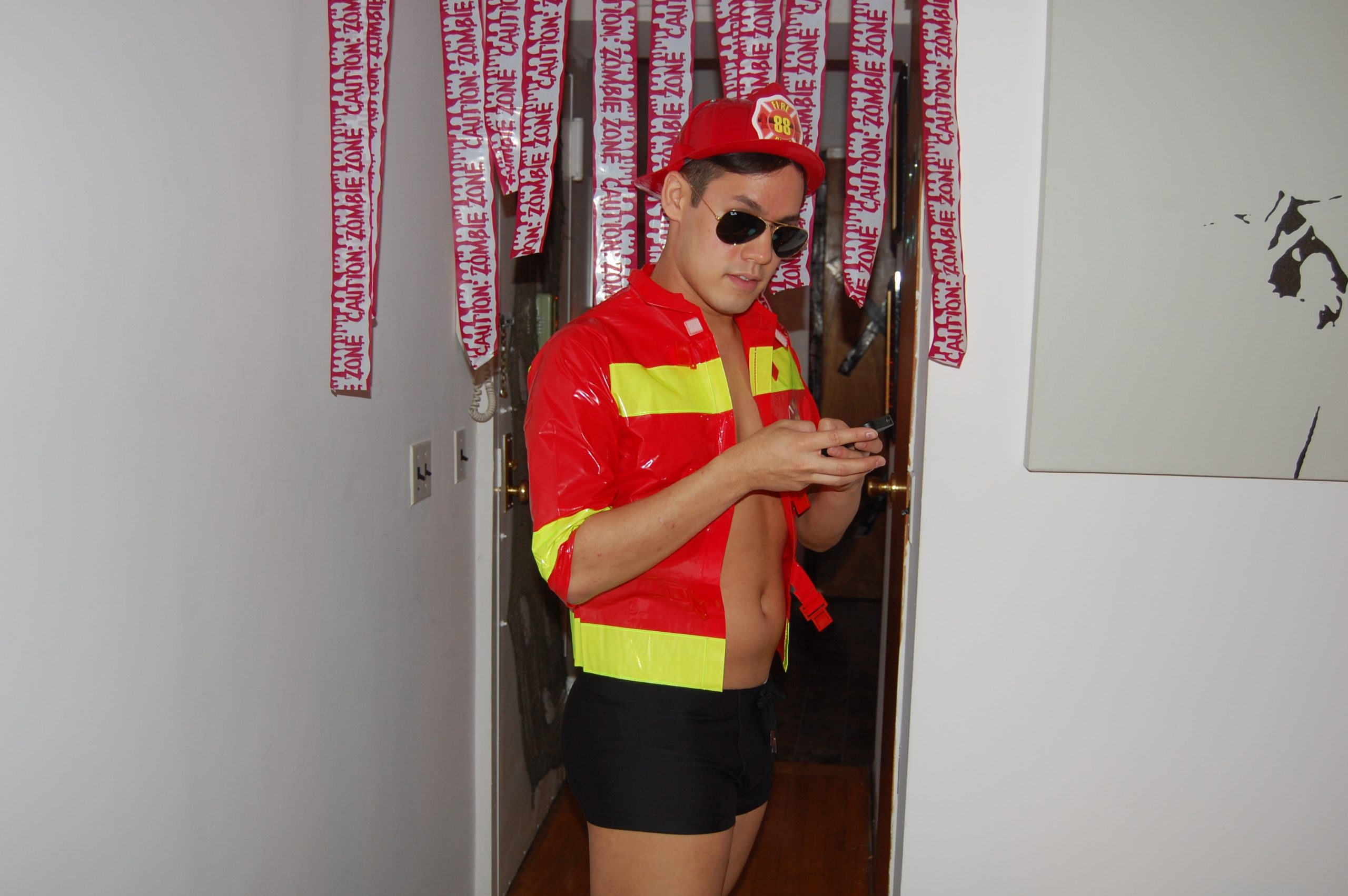 My roommate as a sexy fireman (yes, that is a child’s costume)