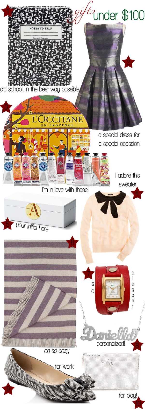 Well guys, it’s that time of year again; my favorite time of year- the holiday season! Christmas is by far my favorite holiday and every year around October I start itching to listen to my favorite Christmas tunes. Although I know it’s too early for that (I make myself wait until the day after Thanksgiving), it’s not too early to start shopping for gifts! This year, I’m putting together a series of gift guides for every budget- starting with the most expensive, $100 and under!