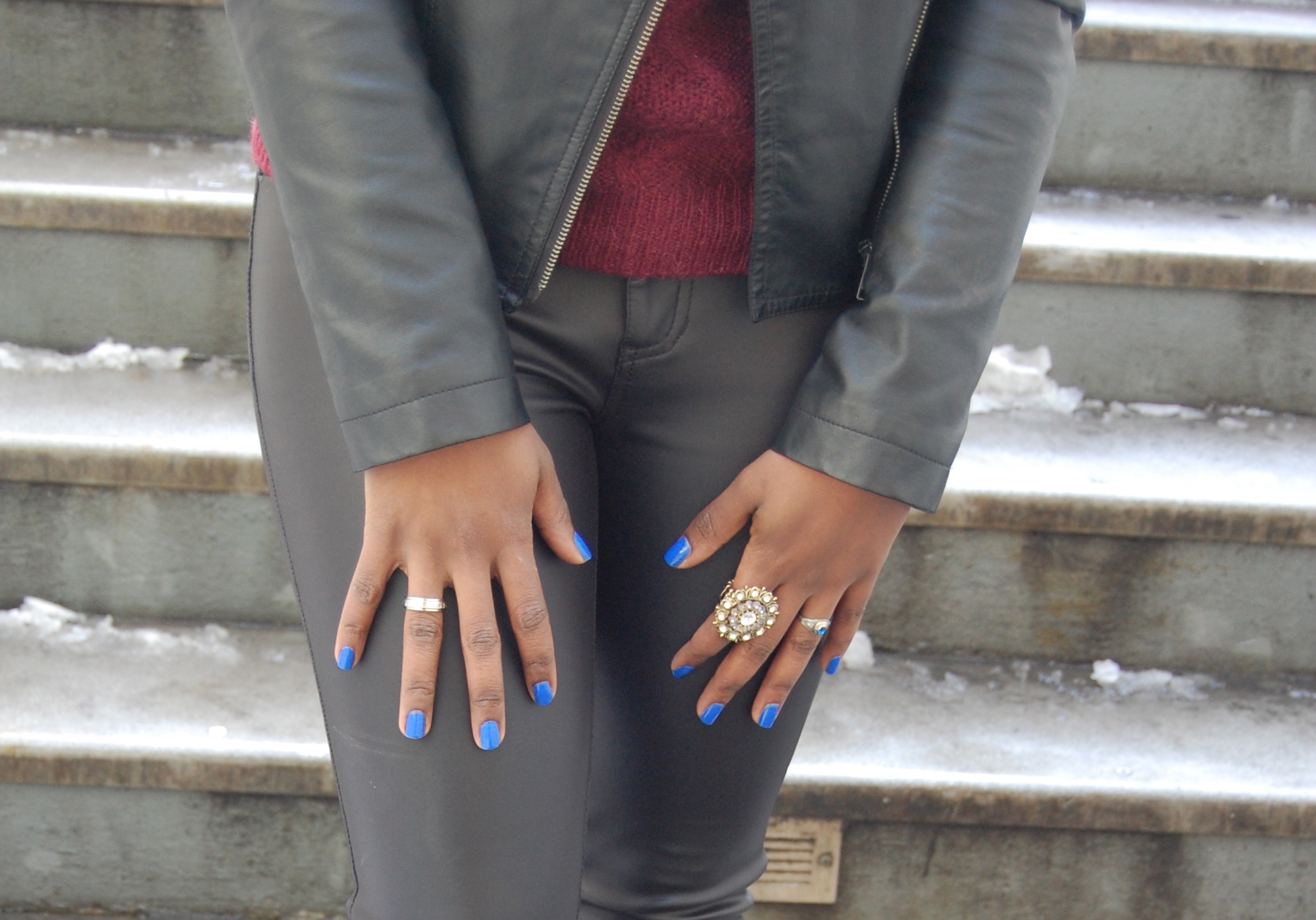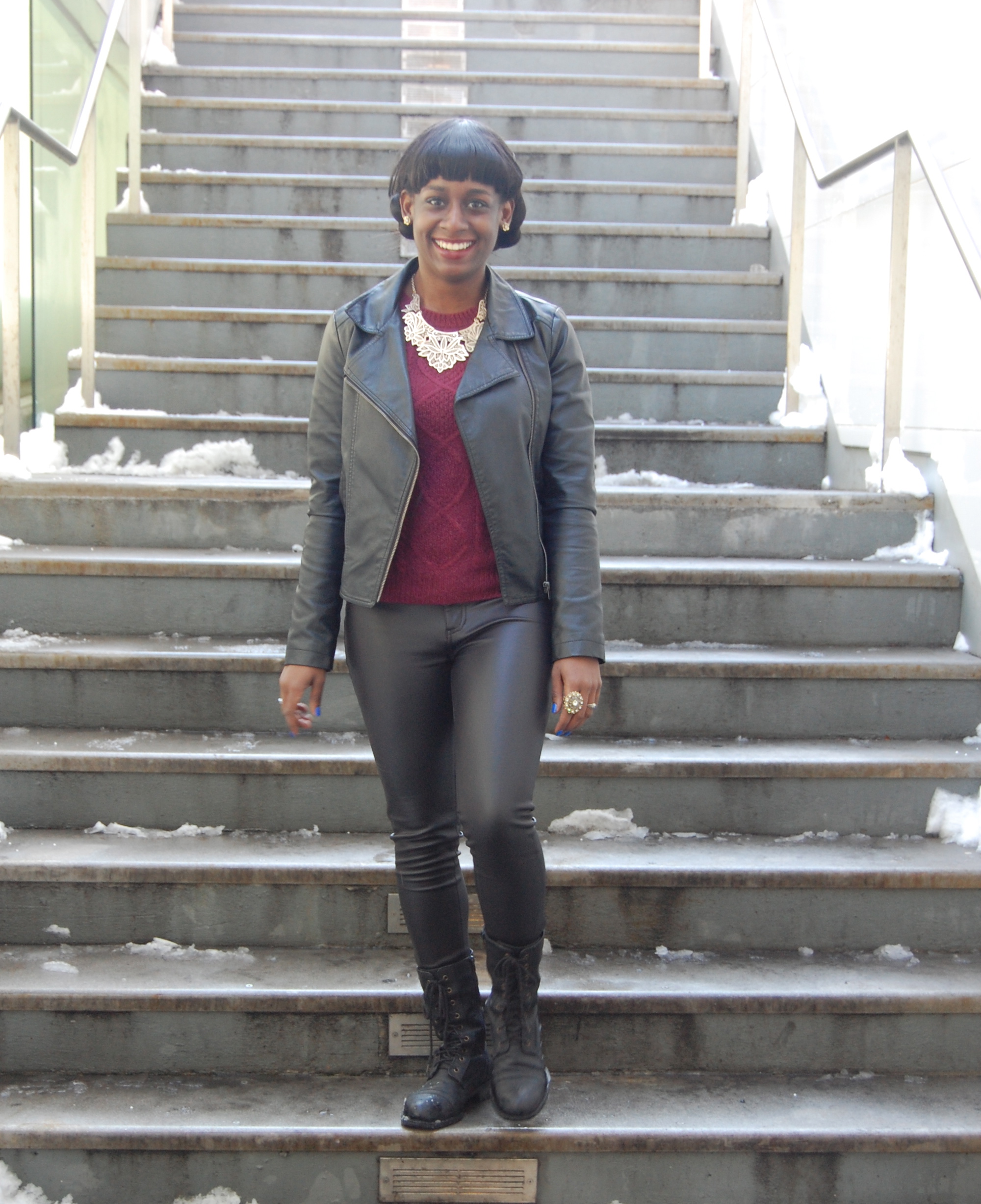 Jacket, Necklace and Leggings- Forever 21 // Sweater- H&M // Boots-old // Ring- Amy O.